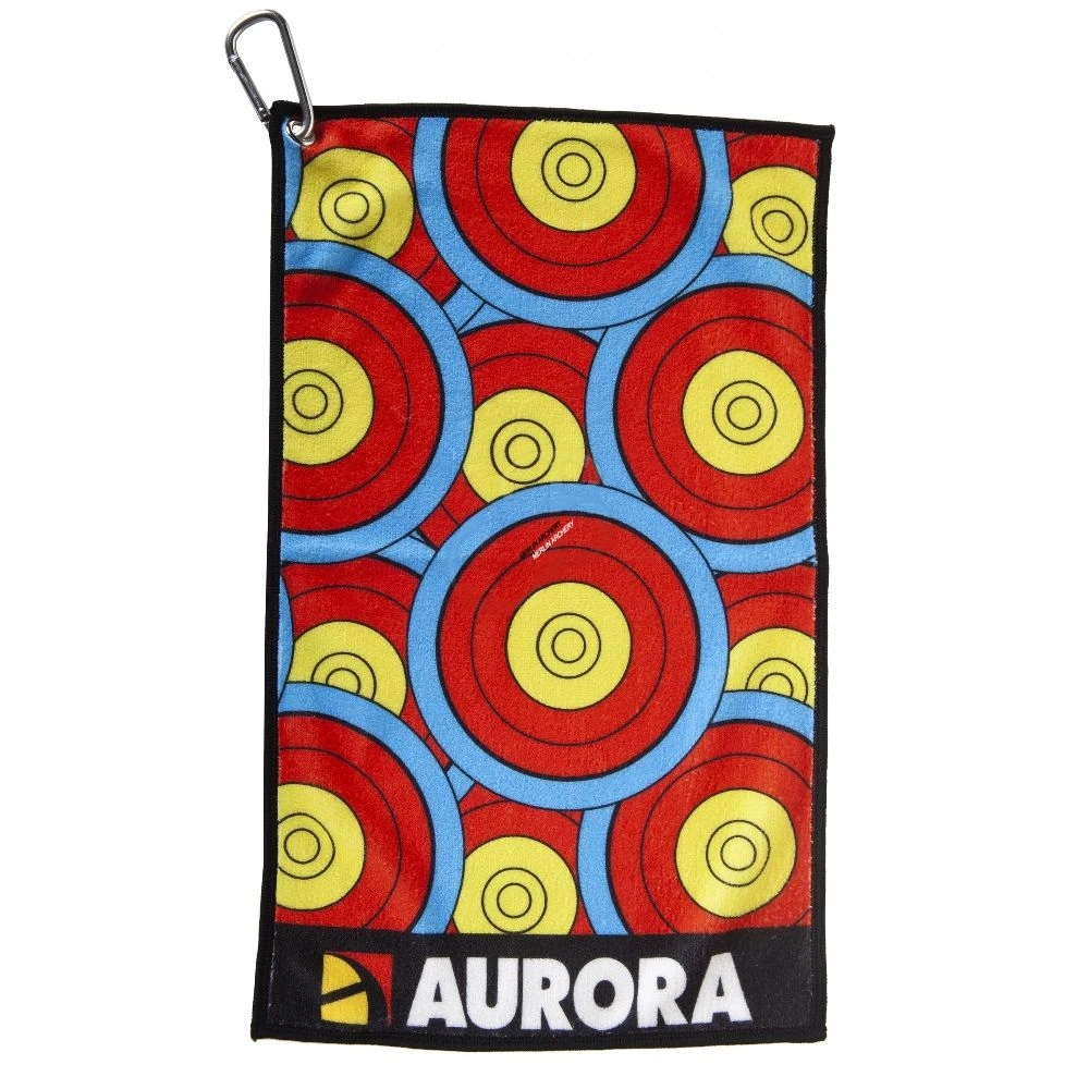 Soft towel made of polyester, the front side is colourfully printed with a target design.