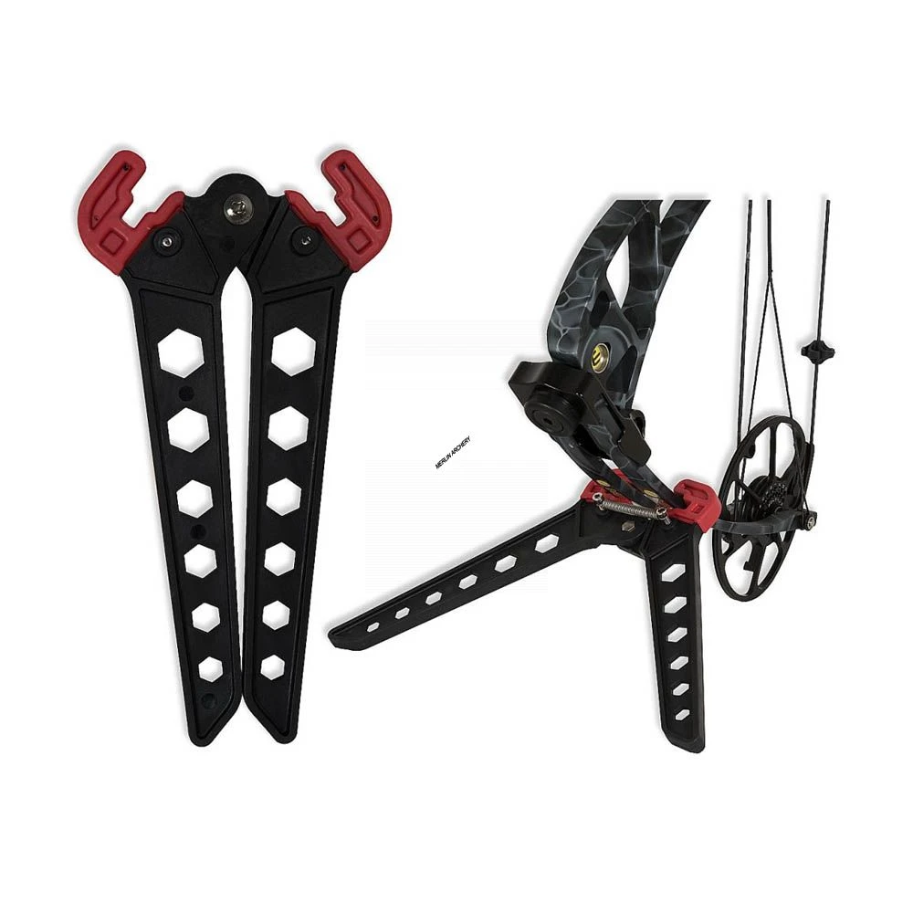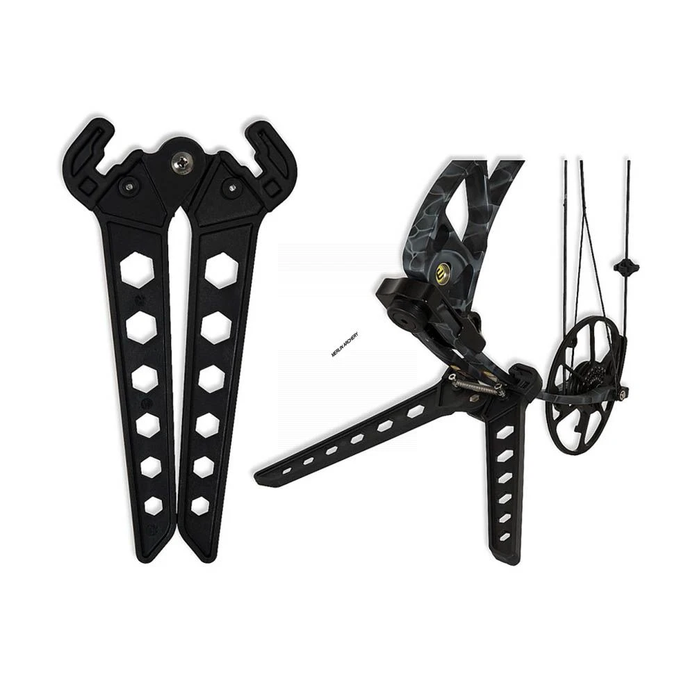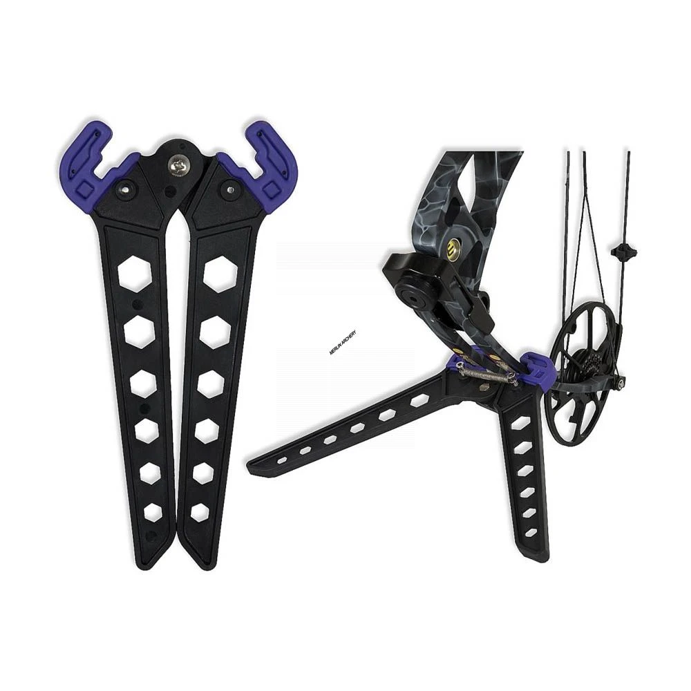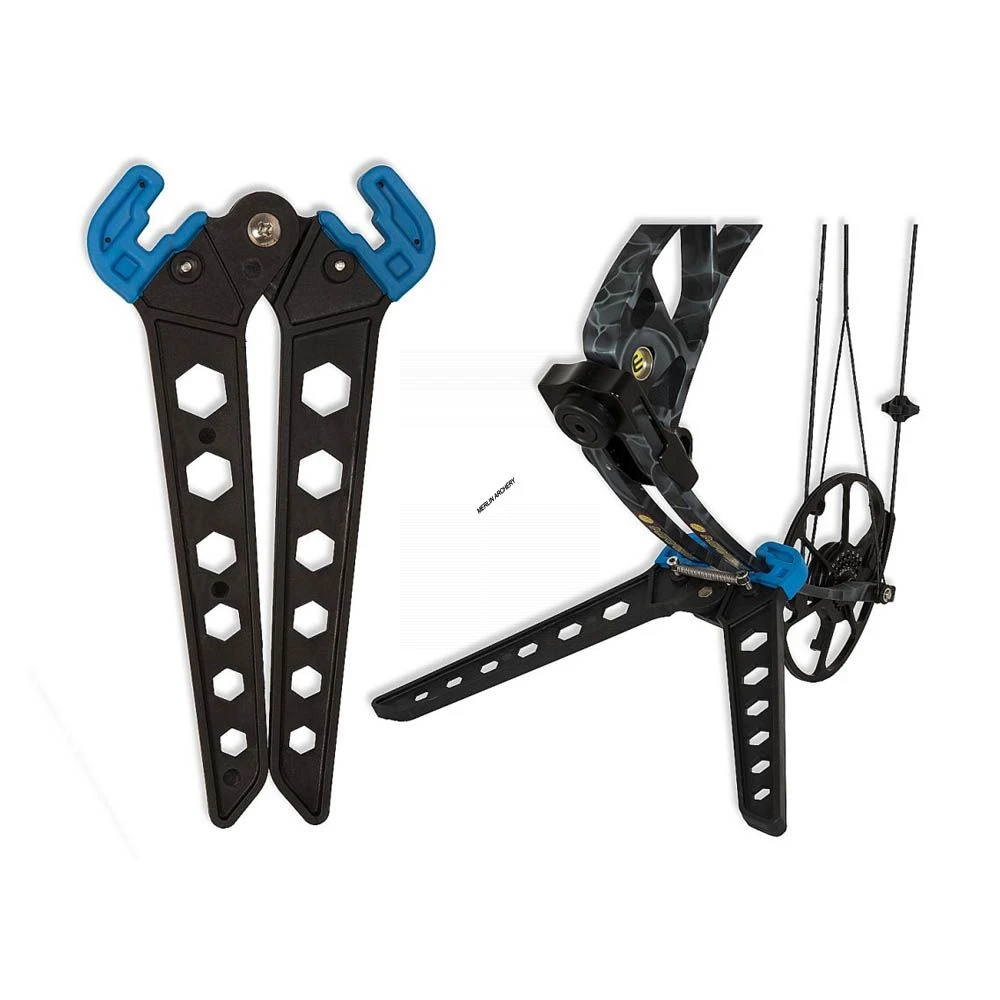 A spring loaded compact bow stand that securely clamps onto your bow, suitable for most compound bow limbs.