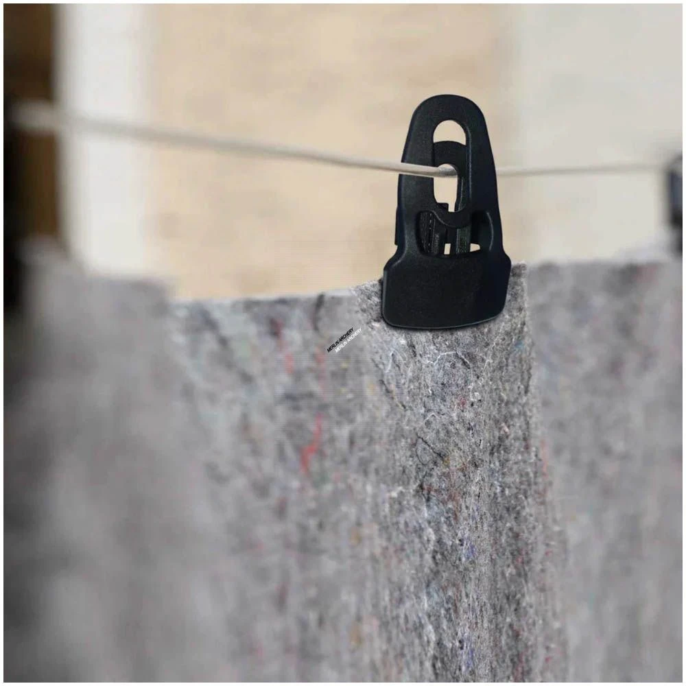 - Instead of less reliable punched eyelets, we use clips for secure attachment. Note that the material density may vary slightly, affecting the mat’s robustness.