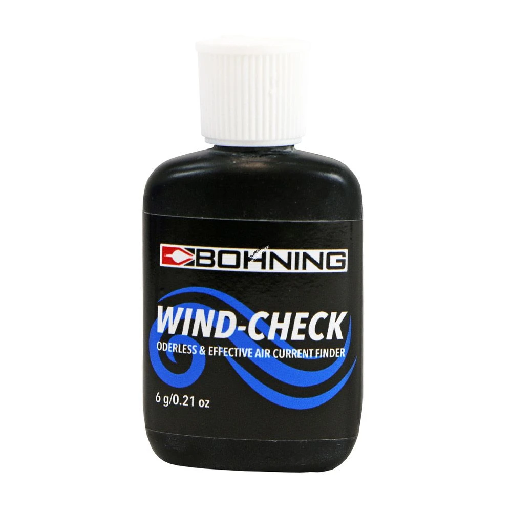The Bohning wind check powder detects the slightest air thermals in an easy to use flip-top bottle.