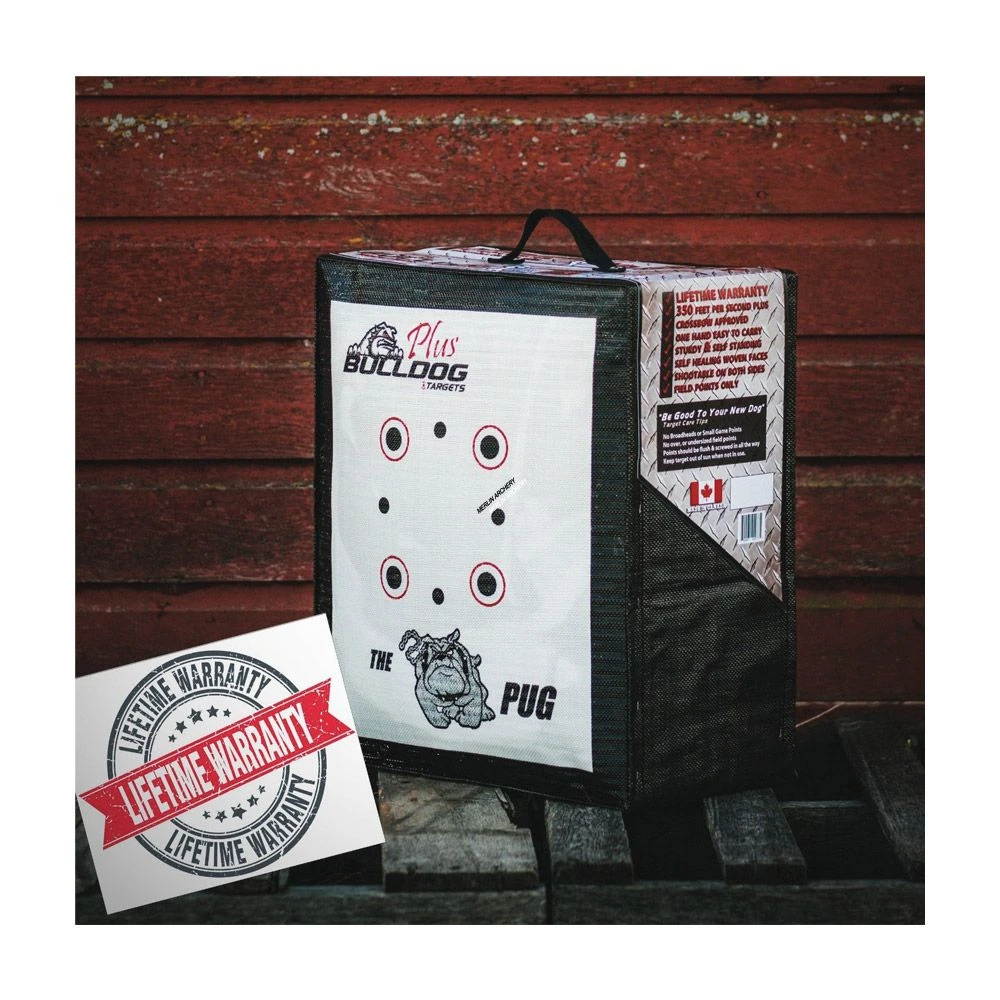 The Pug archery target is self-standing and the lightest target in the bulldog line-up. All targets also include and ez-grip carrying handle as well.