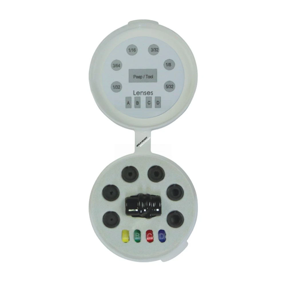 The deluxe kit includes: InSight Peep Housing, 6 apertures (1/32″,3/64″,1/16″,3/32″,1/8″,5/32″), aperture installation tool, protective case, 4 clarifying lenses (A, B, C, D), aperture installation tool, and a protective case.
