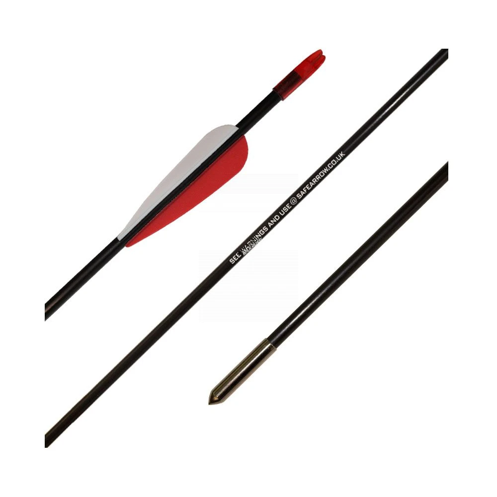 Available In Length Of 30″ With Red Fit-Over Nocks, Red And White Parabolic Cut Vanes And Fit-Over Steel Points.
