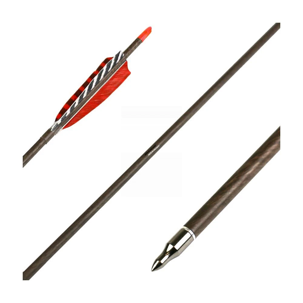 Ready-made traditional carbon arrows, fletched with contrasting feathers.