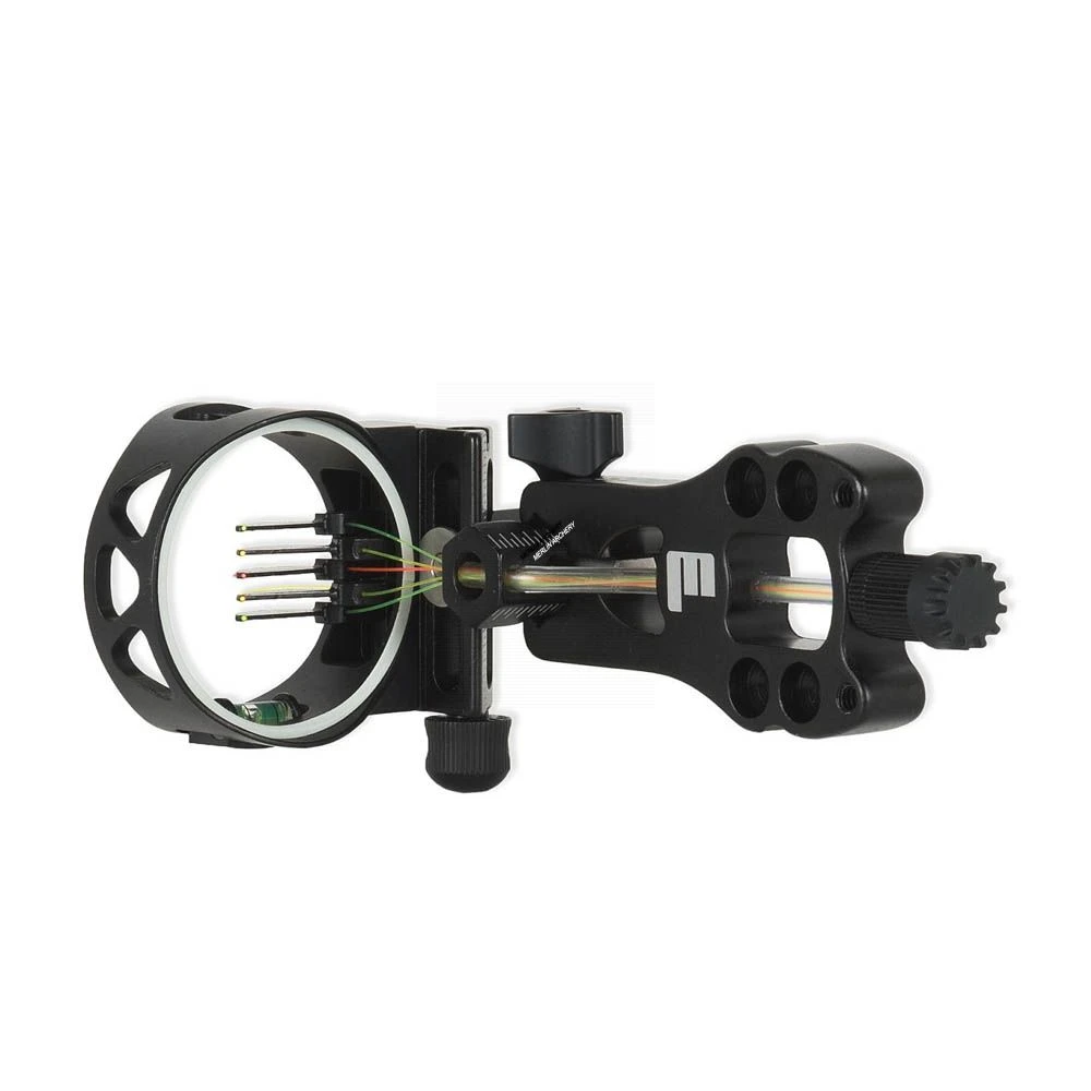 Aluminium lightweight 5-pin .019 fibre optic hunting sight with micro toolless windage and height adjustments, sight level and light, which makes the sight pins visible in low light levels.