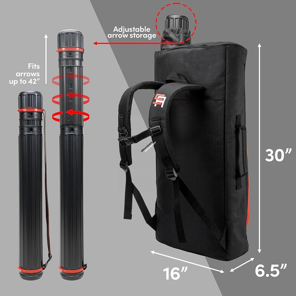 Fits a full recurve take-down bow setup along with accessories, and arrows up to 42″.