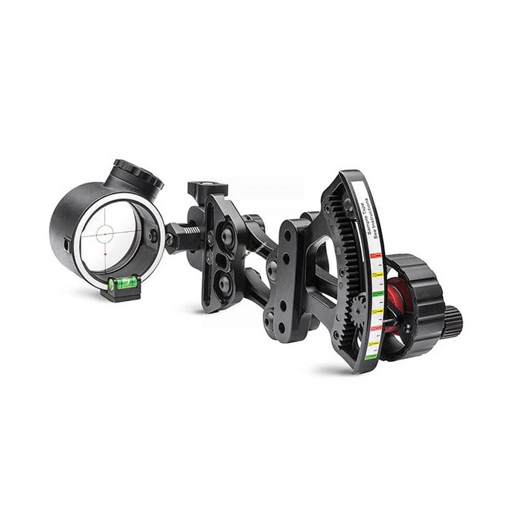 PWR DOT™ technology uses an LED illumination system inside the lens instead of a conventional pin ZERO–IN™ adjustment dial with over 80 pre–marked yardage tapes for simple setup.